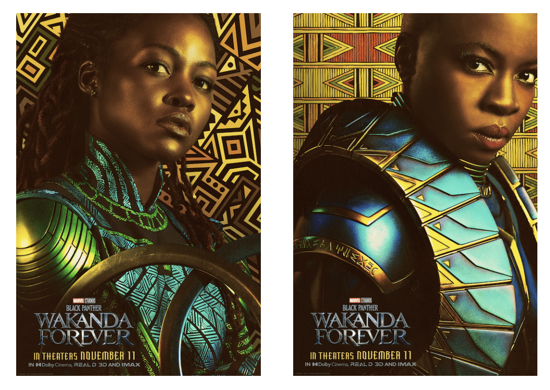 A new TV spot for Marvel Studios’ “Black Panther: Wakanda Forever” and six new character posters featuring Letitia Wright (Shuri), Lupita Nyong’o (Nakia), Danai Gurira (Okoye), Angela Bassett (Queen Ramonda), Tenoch Huerta Mejía (Namor) and Winston Duke (M’Baku), have been released.