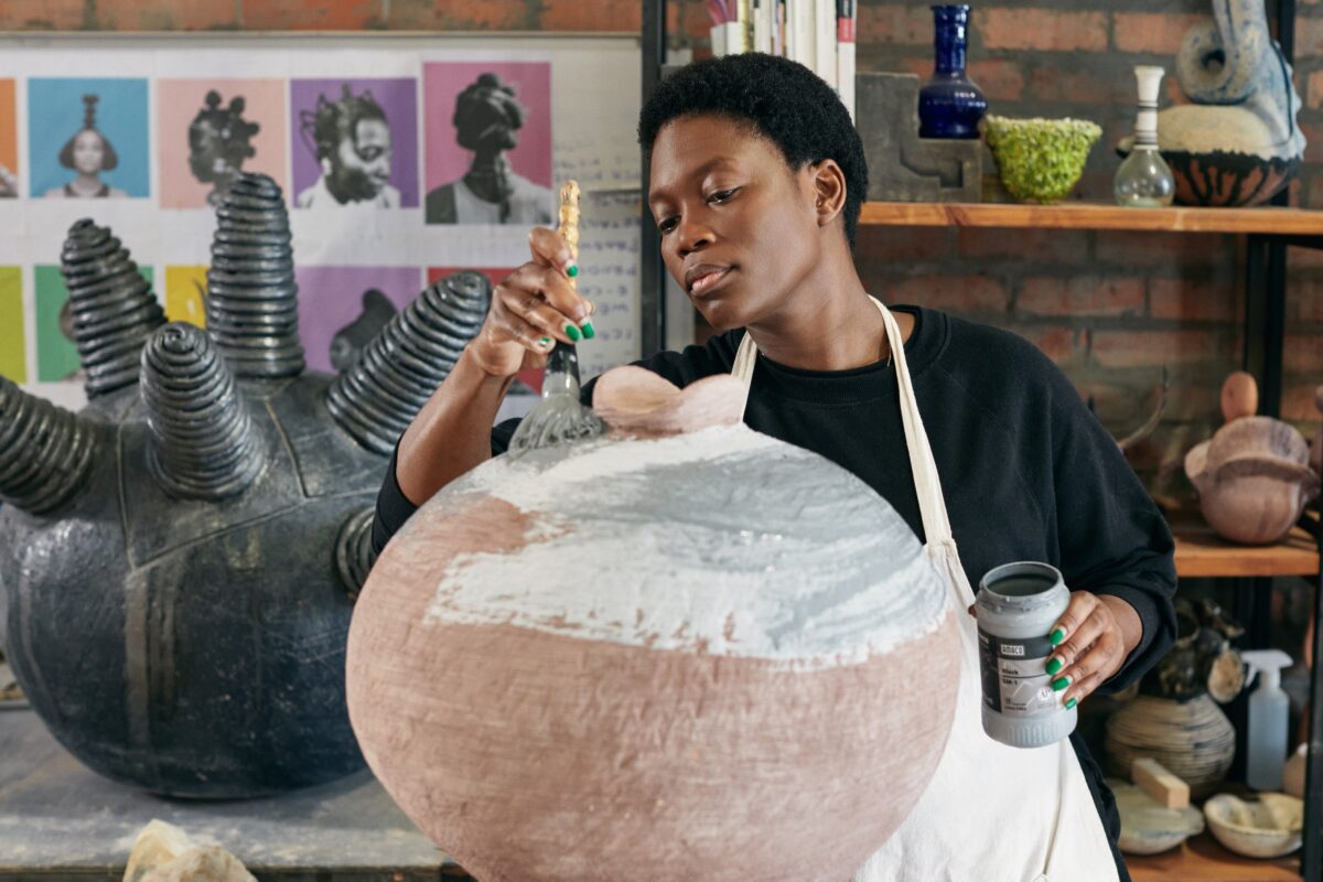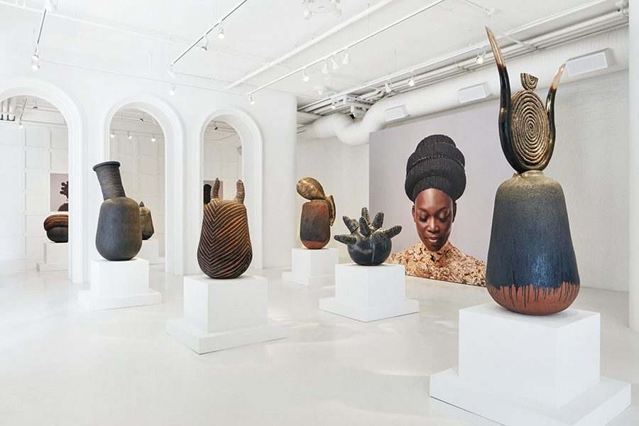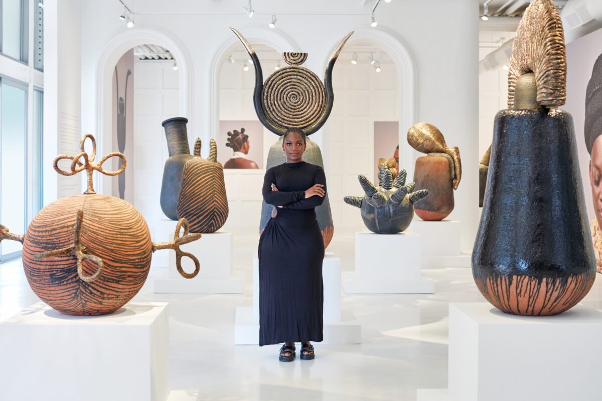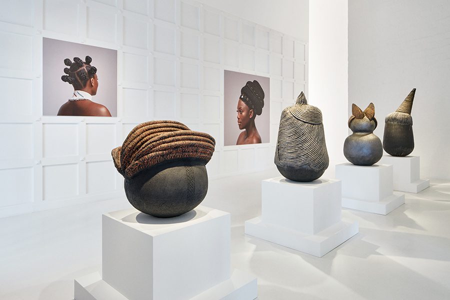 The series of ceramic and bronze sculptures draws inspiration from the elaborate art of hairstyling practiced by Black women across the African continent and diaspora.