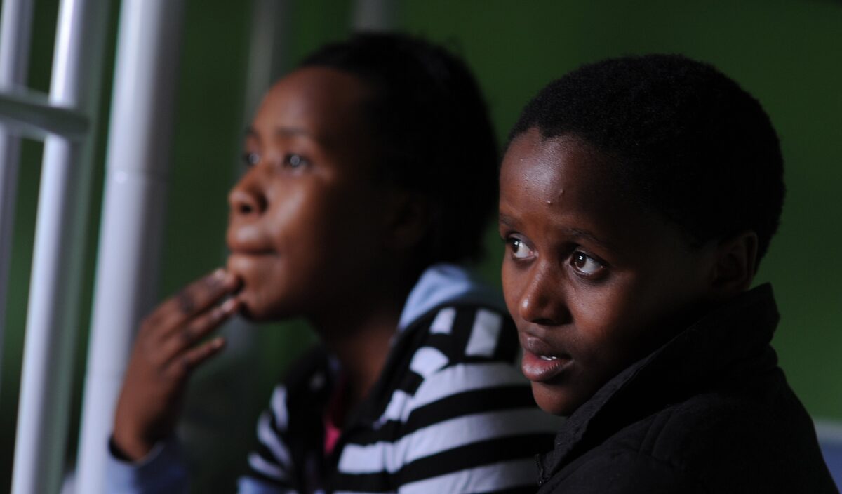 Teenage girls sit in a care centre in Palmerton. The teenagers, were forced into arranged marriages, a practise being revived by poor, rural South African families desperate for money. AFP PHOTO / ALEXANDER JOE