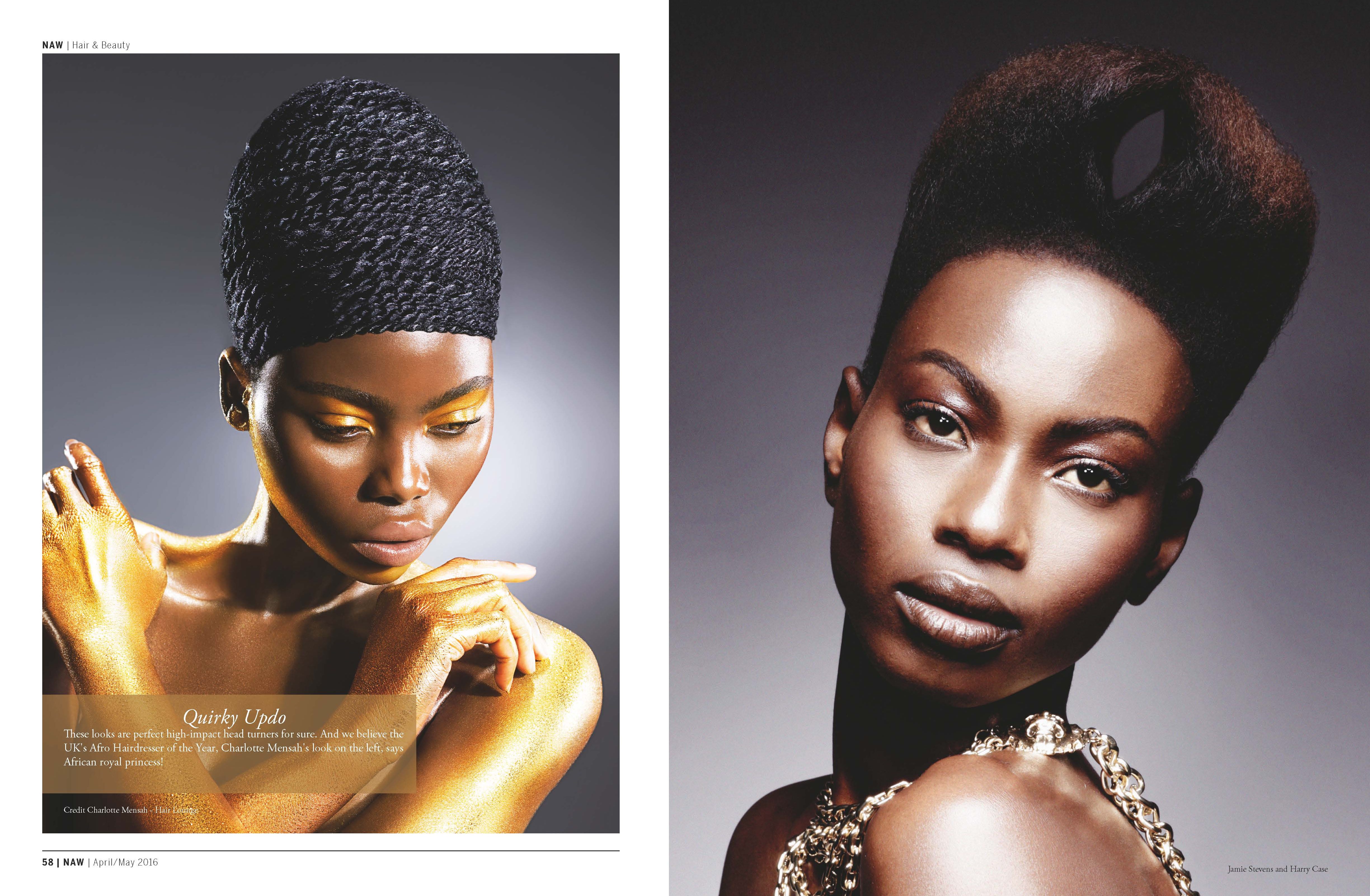 These looks are perfect high-impact head turners for sure. And we believe the UK’s Afro Hairdresser of the Year, Charlotte Mensah’s intricate plaited updo, says African royal princess!